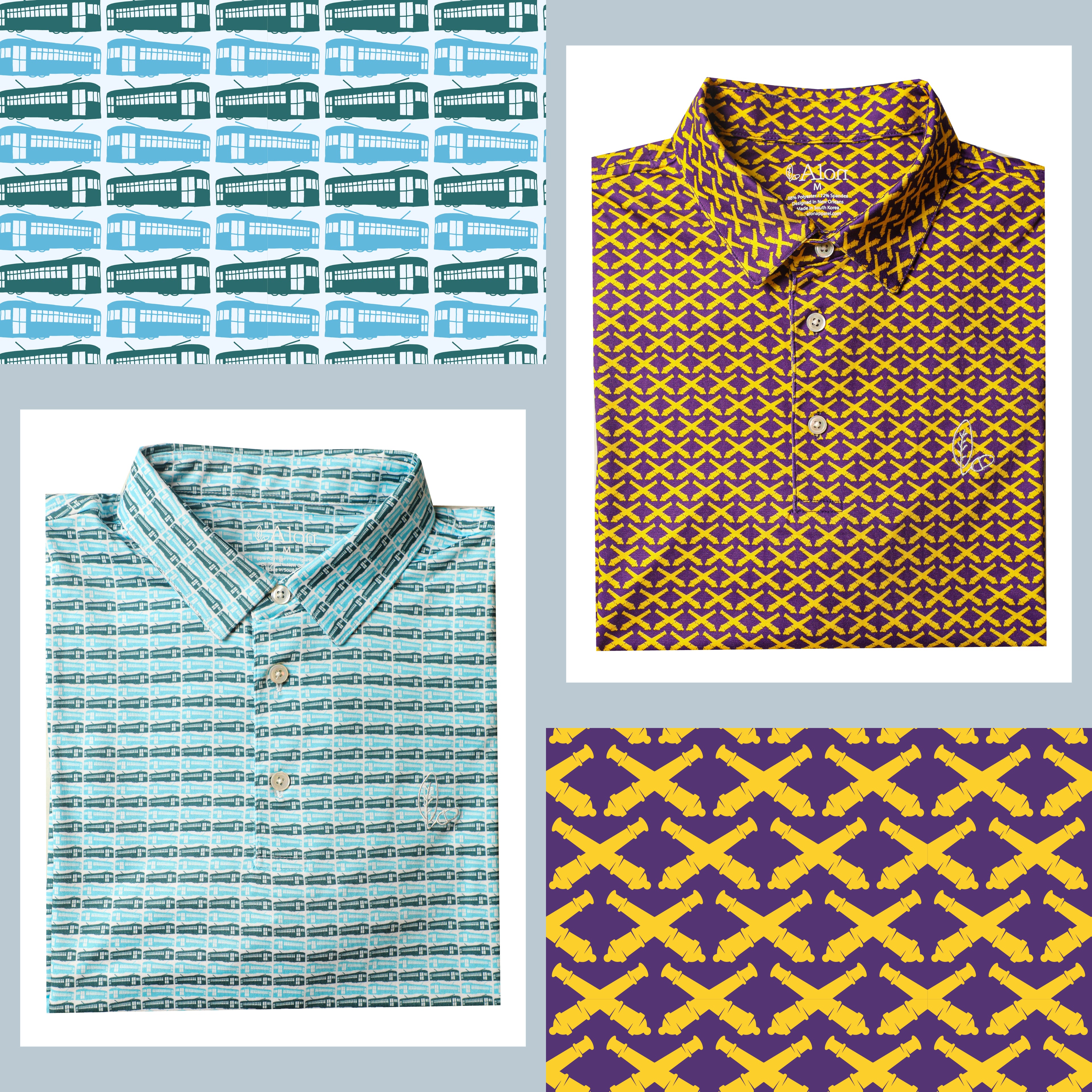 We strive to bring creative patterns and styles that reflect the geniality, pride, and resilience of our great community. Some loud and obvious to all, others noticable only to the locals. Our products are made from the best performance fabrics that can beat the heat of Satchmo Fest and seamlessly transition to dinner at The Pelican Club.